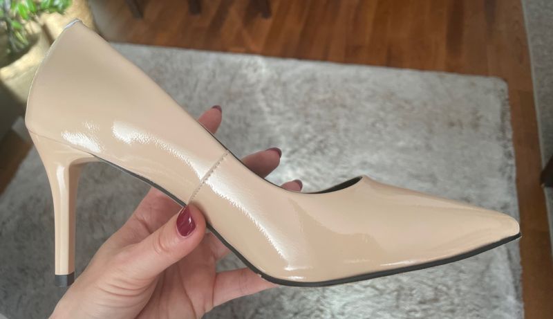 Die Schuhe sind sehr bequem, die Einlegesohle unter der Ferse und unter dem Mittelfuß ist konturiert, mit zusätzlicher Polsterung/Schaumstoff, was den Tragekomfort weiter beeinflusst. Die Farbe der Schuhe ist perfekt fleischfarben - sie passen zu jedem Styling und verlängern optisch die Beine. Der große Vorteil dieser Schuhe ist der Kunststoffabsatz. Ich hatte früher die gleichen Schuhe von einer anderen Firma, aber die Absätze waren mit lackiertem Leder überzogen, was dazu führte, dass sie sich sehr schnell abnutzten (es genügte ein unglücklicher Schritt auf dem Bürgersteig, Kopfsteinpflaster oder einem Parkplatz aus durchbrochenen Platten oder Ökogitter). Der Kunststoffabsatz ist widerstandsfähiger. Ein weiterer Vorteil der Filippo-Schuhe ist die ideale Höhe des Absatzes - sie sind nicht zu hoch.